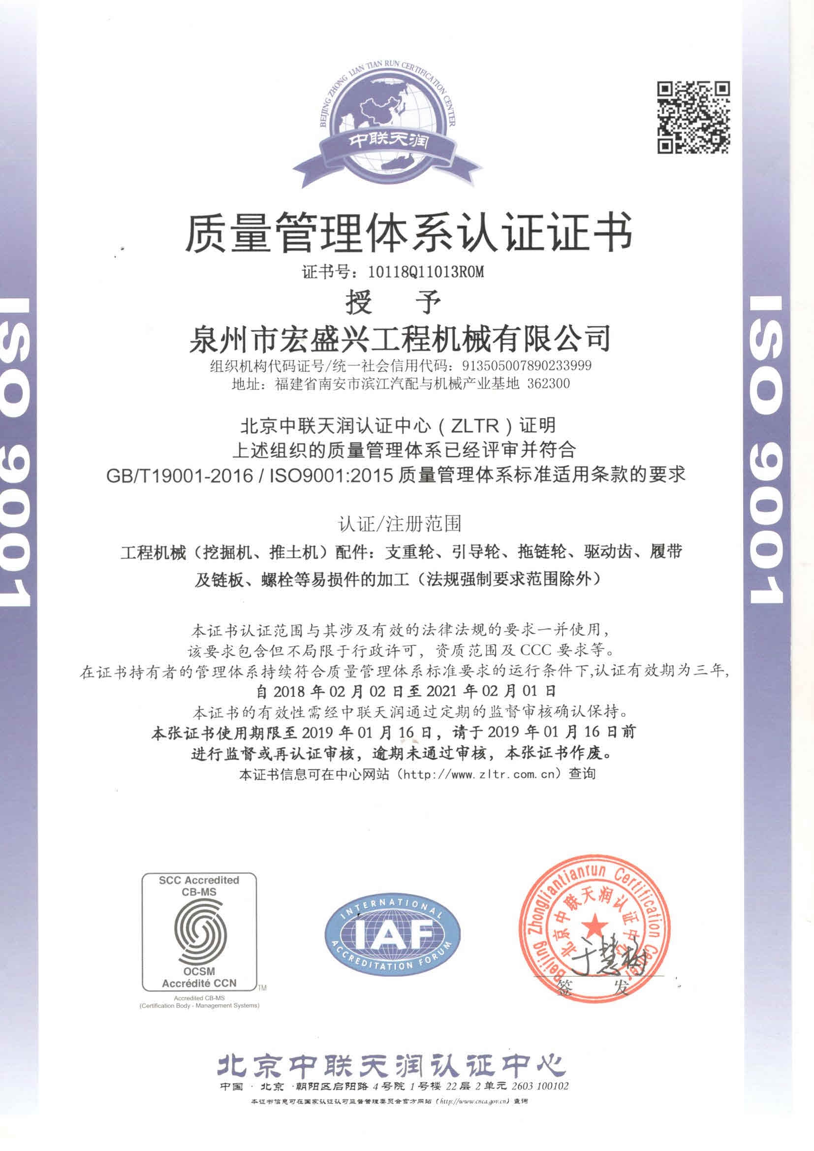 質量管理體系認證證書